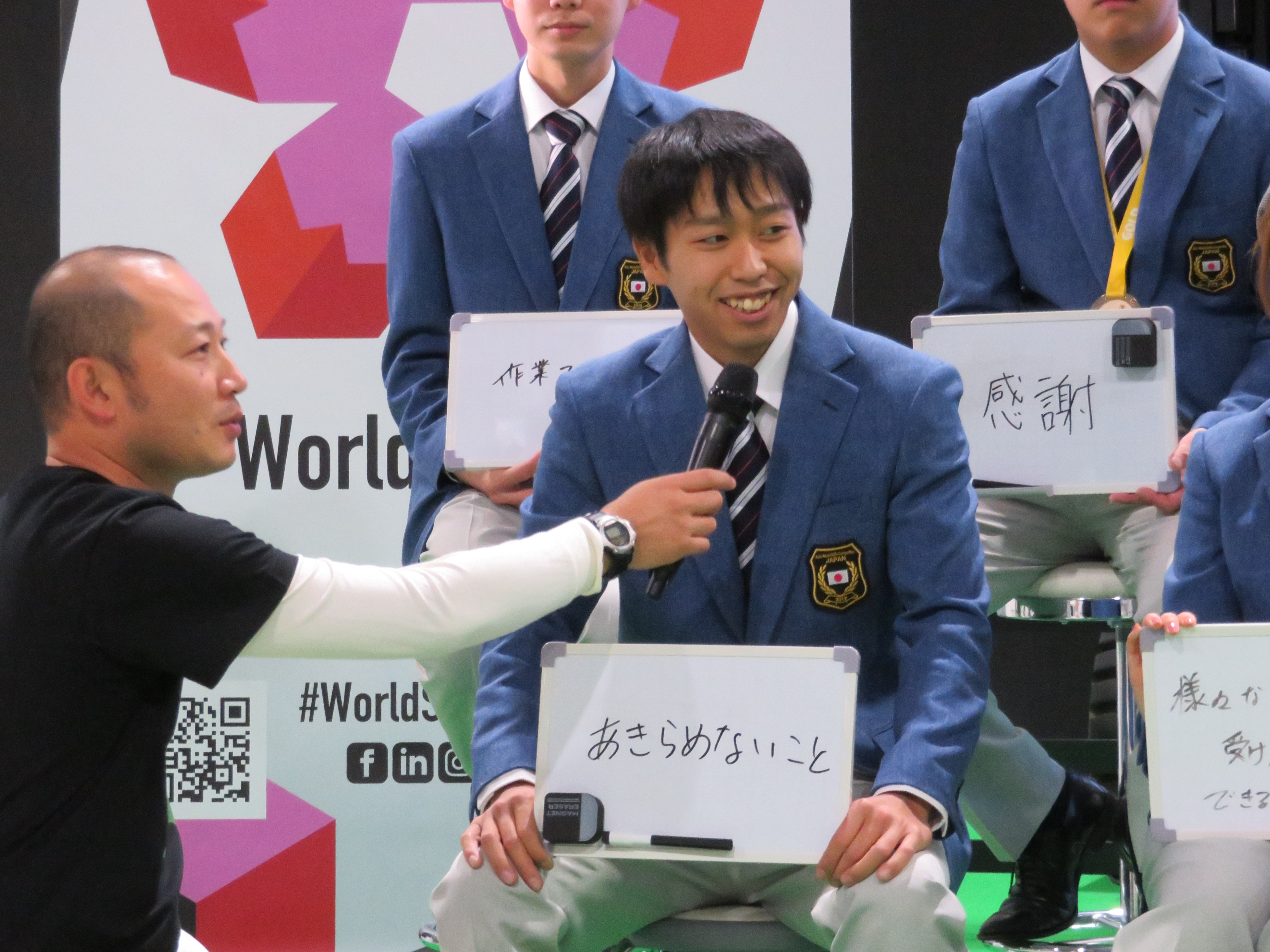 本年は11月15日(金)から11月18日(月)の4日間にわたって愛知県国際展示場にて開催され、42職種、約1,300名の満23歳以下の技能者が都道府県を代表して熱戦が繰り広げられました。また大会初日には同年8月に開催された第45回技能五輪国際大会に出場した日本選手団の報告会が行われ、子供達へ向けてメッセージや技能体験等のイベントを通じ将来ものづくりに携わりたいと夢を持ってもらえる企画が実施されました。(弊社からは岩原大樹が参加)